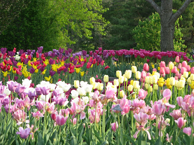 Tonight my friend Peggy hosted a training walk at the University of Minnesota Landscape Arboretum and its tulip season or week, hence the picture above and beyond. I guess last week there were daffodils everywhere but I missed that one, I was at my second outdoor baseball game of the season :) That's another blog post though.